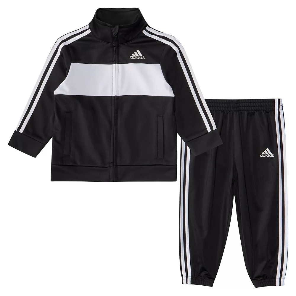 adidas gives him sporty style with this coordinated tricot track jacket and pants set.