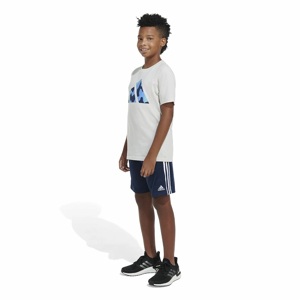 A hit of camouflage is all he really needs. This boys’ adidas t-shirt delivers with a bumped up logo design. So soft, he’ll want to wear it nonstop. No worries though. It’s totally washable.
