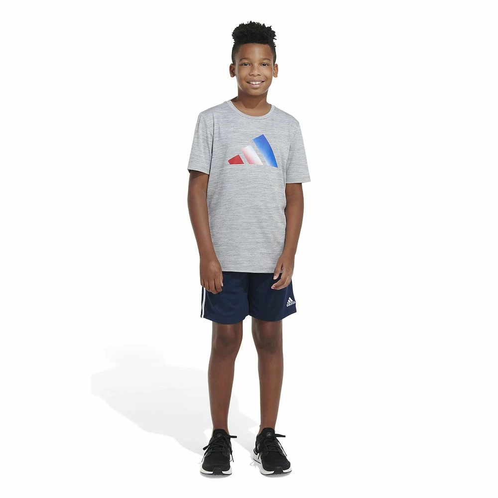 Active kids are happy kids. So while he runs, bikes or walks to school, this boys’ adidas graphic t-shirt keeps him dry.