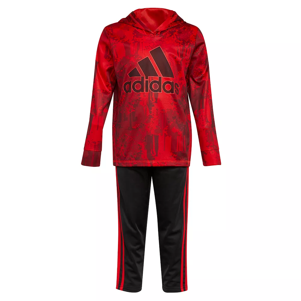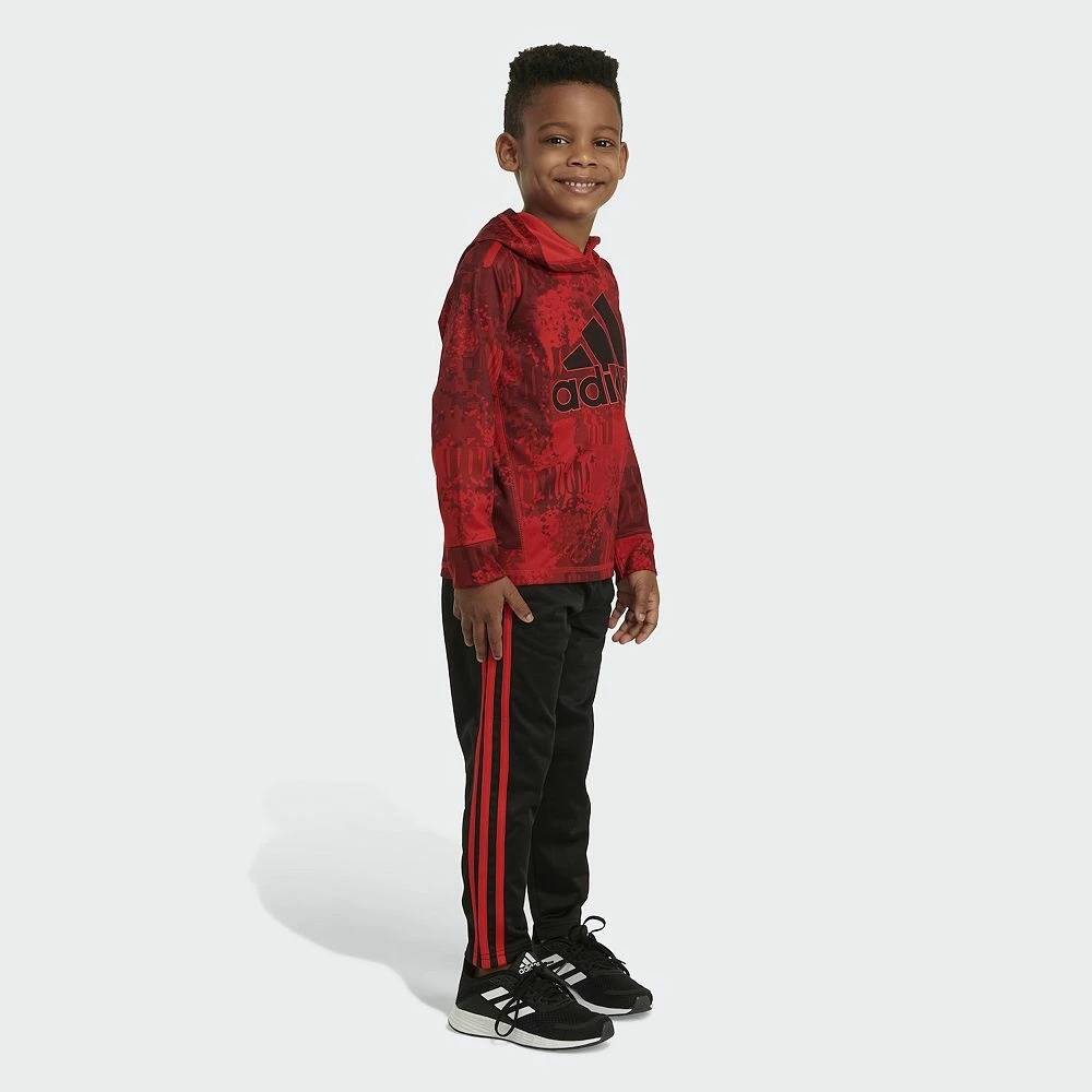 Your little man will look oh-so-stylish in this toddler boys’ hooded tee and tapered pants set from adidas.